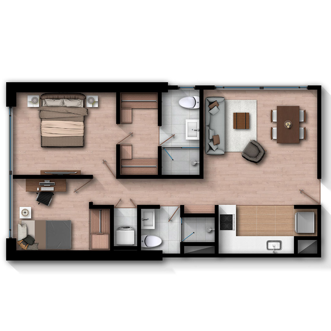 View 63 tiene en cuenta el nuevo concepto de ciudad con un diseño moderno y funcional pensado para las necesidades de estudiantes y profesionales. Además, cuenta con certificación preliminar Edge, que reconoce la construcción sustentable a nivel internacional.